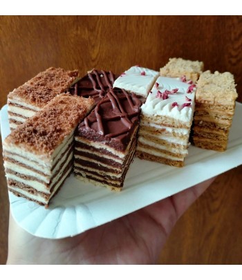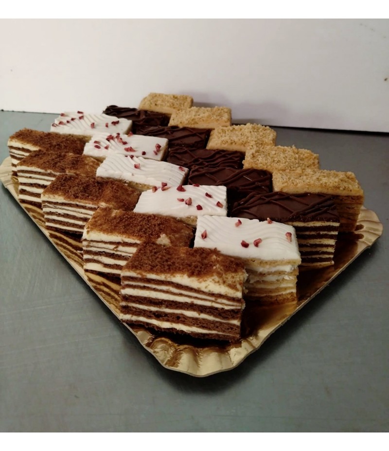 Prăjiturile asortate se pot ambala la alegere (în proporțiile solicitate de dvs.), dintre următoarele sortimente: