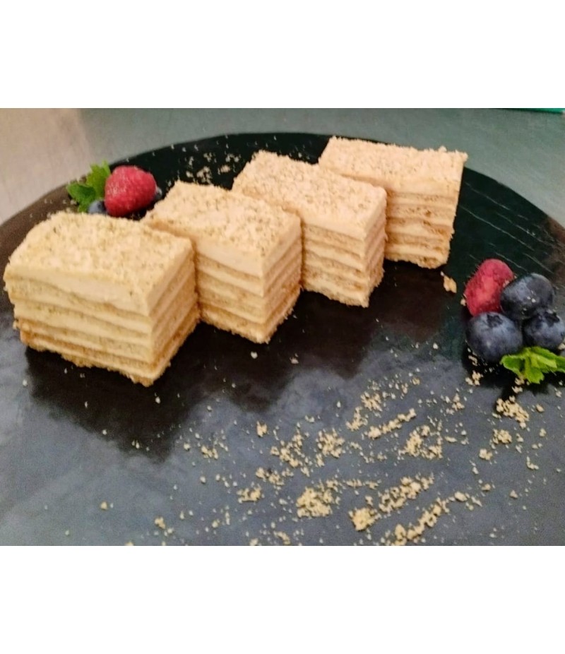 Prajitura Marlenka are un gust excepţional. Blatul pufos cu miere și crema delicioasă de caramel fac ca acest sortiment sa fie cu siguranță în topul preferințelor tale.