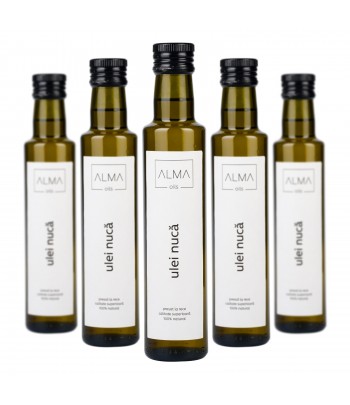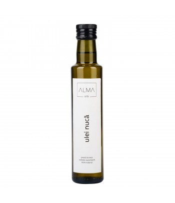 Uleiul din miez de nucă, presat la rece, de la Alma Oils are un gust delicios de nucă și este realizat cu grijă, exclusiv prin tehnologia presării la rece a miezului de nucă neprăjit (provenit din surse sigure).